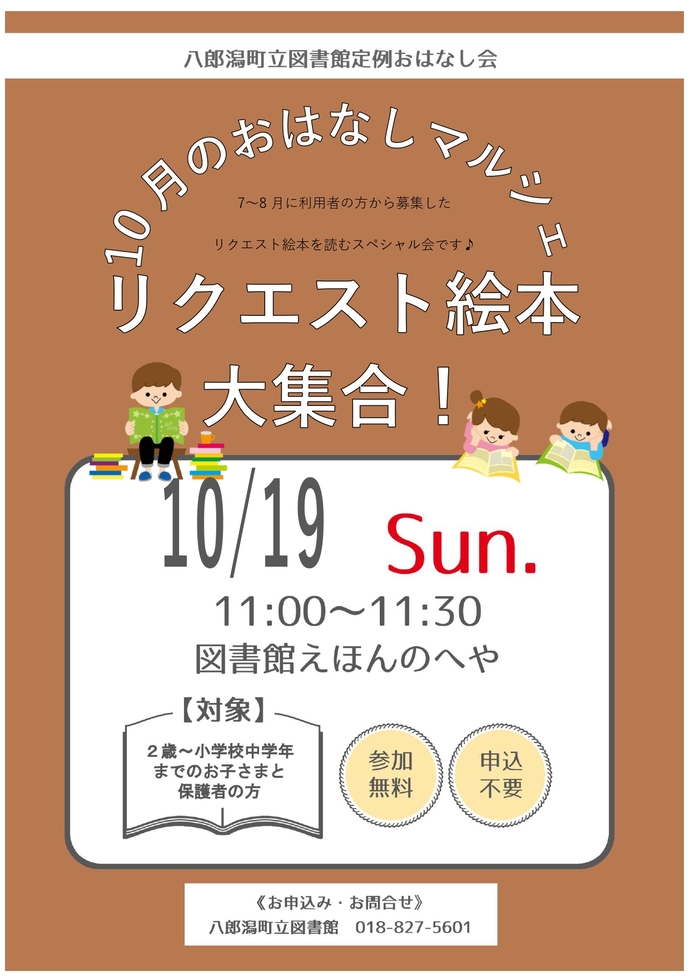 「おはなし会でよんでほしい本」のリクエストの本を読み聞かせするおはなし会を開催します。